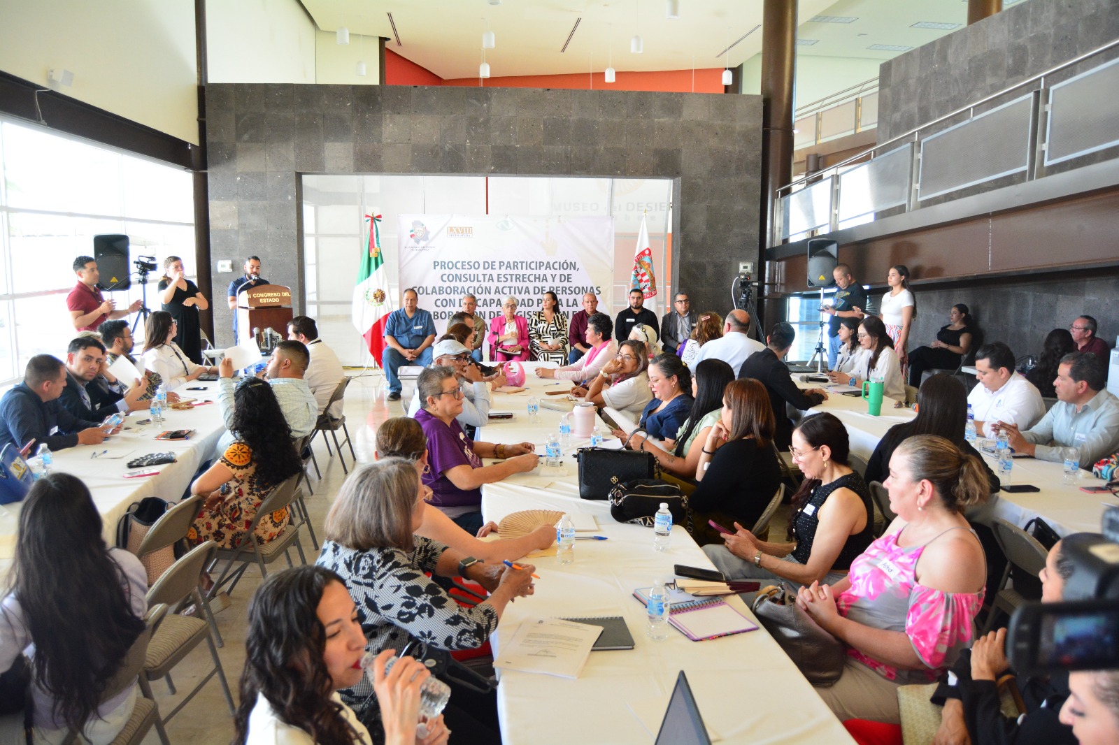 En cada mesa de trabajo se abordaron los ejes temáticos de inclusión, educación y salud, y accesibilidad y acceso a la justicia. La Secretaría Técnica de la Comisión presentó las iniciativas correspondientes, y posteriormente, las personas participantes en cada mesa compartieron sus opiniones y propuestas sobre los temas tratados.