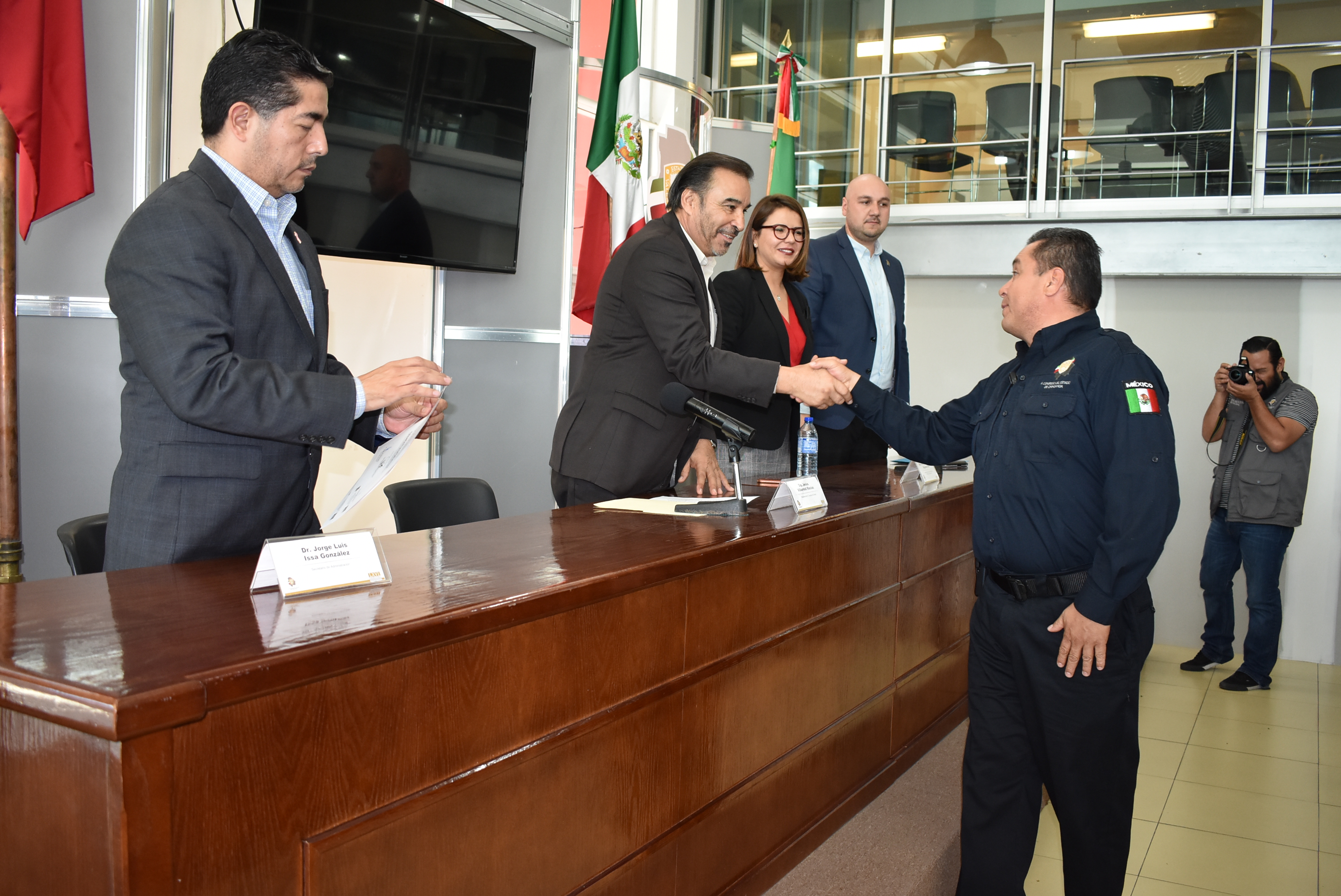 En el evento realizado en el Mezzanine del Congreso del Estado, también estuvieron presentes la diputada Georgina Alejandra Bujanda Ríos, Presidenta de la Comisión de Seguridad Pública y Protección Civil, el Director de Finanzas, Manuel Soledad Villanueva en representación del doctor Issa González, así como el titular de la Escuela de Policía Simeón Esparza Peinado.