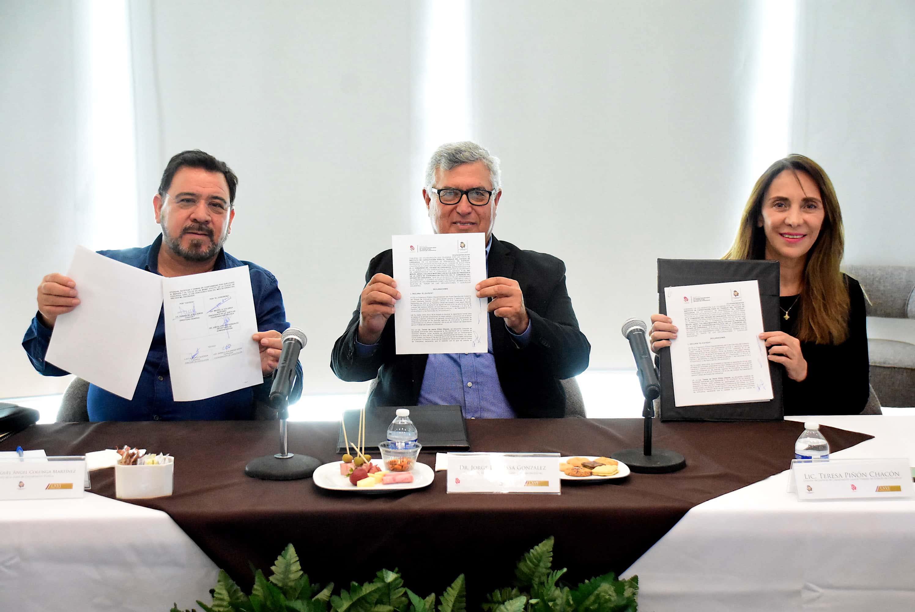 22 de mayo de 2019. El diputado Miguel Colunga, presidente de la Junta de Coordinación Política del Congreso de Chihuahua y el Secretario de Administración, Dr. Jorge Luis Issa González, signaron convenio de colaboración con el Instituto de Capacitación para el Trabajo (ICATECH), con la finalidad de continuar con la profesionalización del personal que labora en el Poder Legislativo.