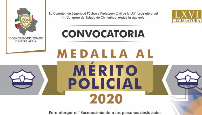 La Comisión de Seguridad Pública y Protección Civil de la Sexagésima Sexta Legislatura del Congreso del Estado, amplió la fecha límite de inscripción para los participantes en la Convocatoria a la Medalla al Mérito Policial en su edición 2020, al 30 de junio del presente año, dado a las condiciones que en la actualidad se presentan por la contingencia provocada por el COVID-19.