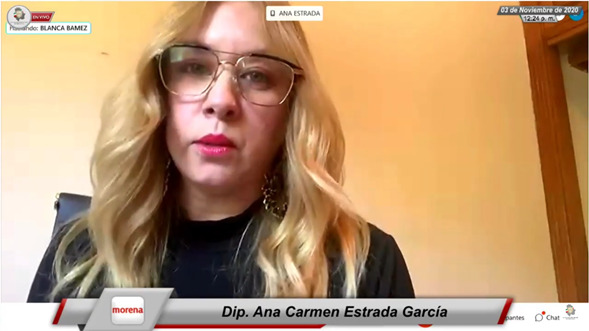 03 de noviembre de 2020. En Sesión Ordinaria del Congreso del Estado, realizada a través de acceso remoto, la diputada de MORENA, Ana Carmen Estrada García, presentó iniciativa con carácter de decreto, a efecto de reformar el artículo 4 de la Ley del Notariado del Estado de Chihuahua, a fin de incluir el principio de paridad de género en el otorgamiento de patentes para el ejercicio de la función notarial.