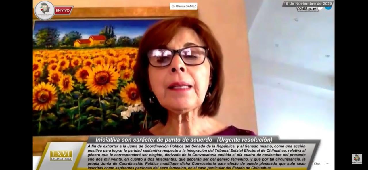 “Actualmente el esquema jurídico, político, administrativo y operativo en nuestro País, obliga a que los Órganos Jurisdiccionales Electorales, entre otras instancias, cuenten con una integración que dé lugar a la paridad de género; en el relativo a la invocada paridad de género, para lograr una paridad sustantiva entre precisamente géneros, particularmente en el caso que nos ocupa, Órgano Jurisdiccional Electoral, denominado Tribunal Estatal Electoral del Estado de Chihuahua, en los términos de los numerales 37 de la Constitución Local, 293 de la Ley Electoral del Estado, y demás relativos y aplicables”, abundó la legisladora.