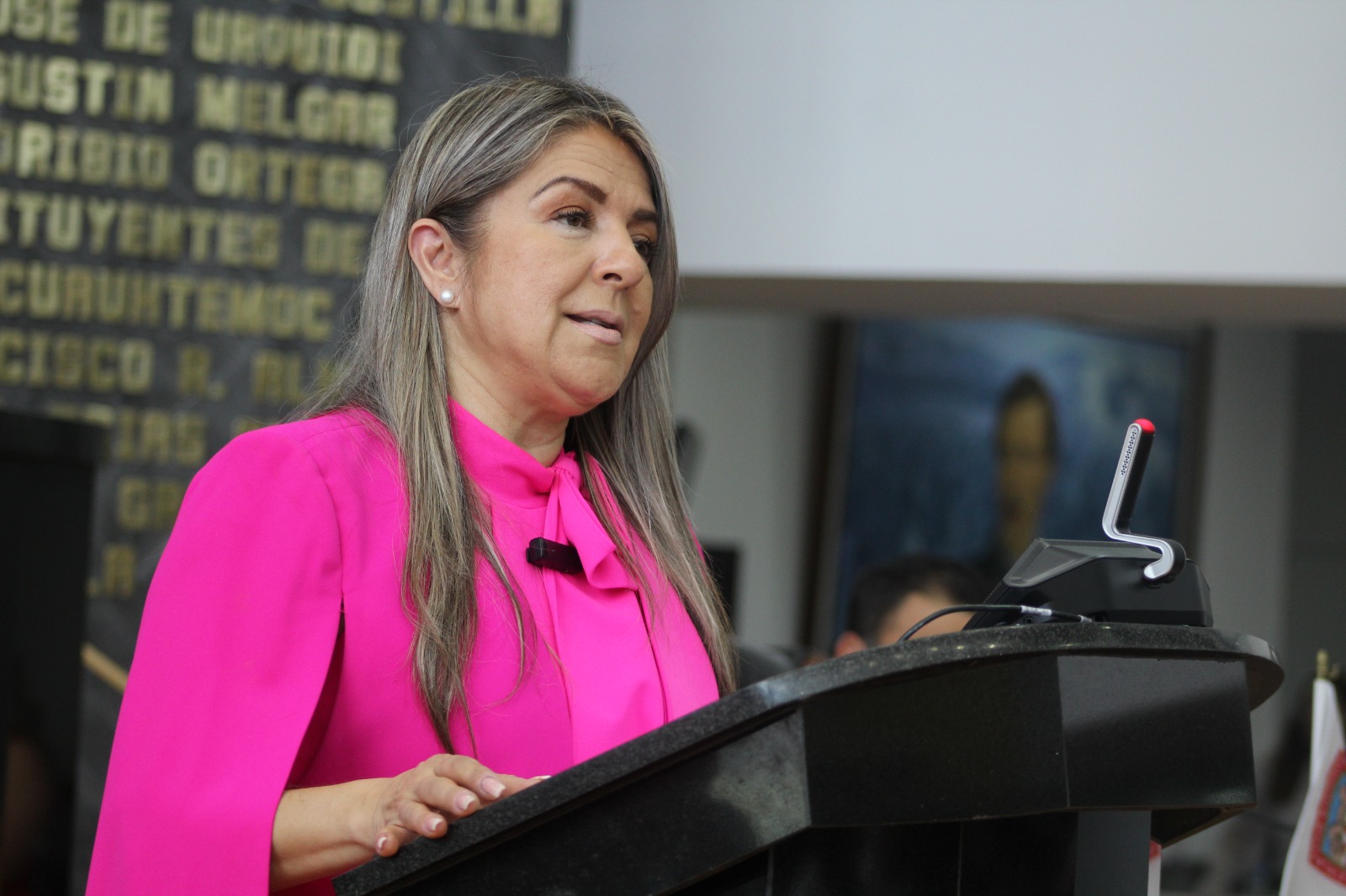 17 de septiembre de 2024. Chihuahua, Chih., 17 de septiembre del 2024.- En el pleno del Congreso la Diputada por Morena Rosana Díaz Reyes formuló un cuestionamiento a Gilberto Loya, Secretario de Seguridad Pública del Estado respecto a los recientes acontecimientos en los municipios de Coyame y Ojinaga y lo sucedido este fin de semana en la rua Jiménez a Parral.