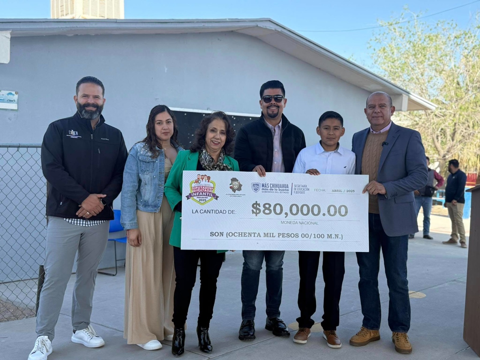 Chihuahua, Chihuahua, a 24 de marzo de 2025.- Cuauhtémoc Estrada Sotelo, diputado y coordinador del Grupo Parlamentario de morena visitó la Escuela Primaria ‘Constitución Mexicana’ para conocer al alumno que será diputado por un día el próximo Día del niño, así como hacer entrega de un cheque de 80 mil pesos para mejoras en dicha institución académica.