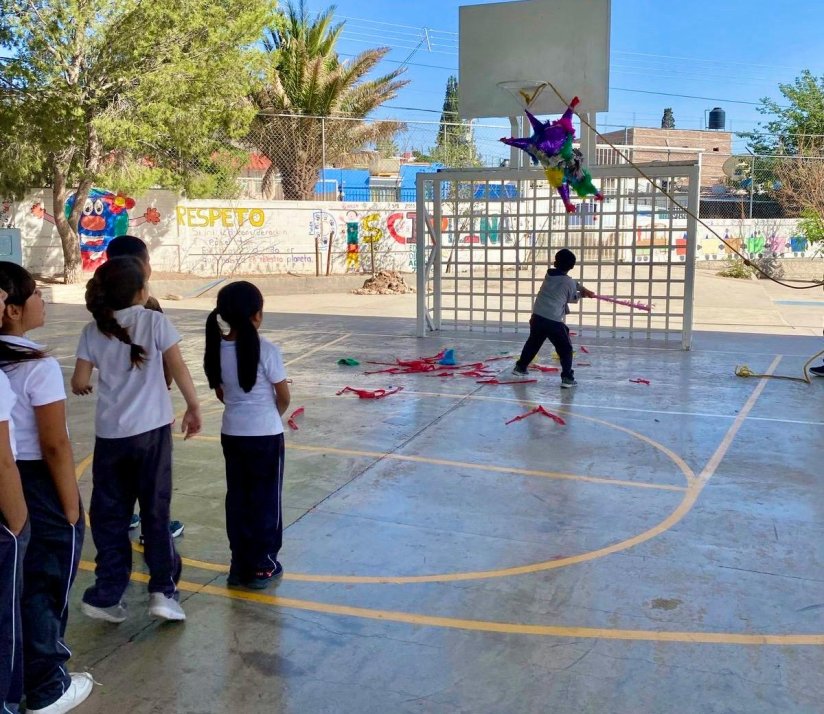 06 de mayo de 2025. Chihuahua, Chih.- La diputada del Partido Acción Nacional (PAN), Carla Rivas, llevó regalos y piñatas a las niñas y niños de la escuela primaria Oscar Soto Máynez, ubicada en la colonia Cerro de la Cruz.
