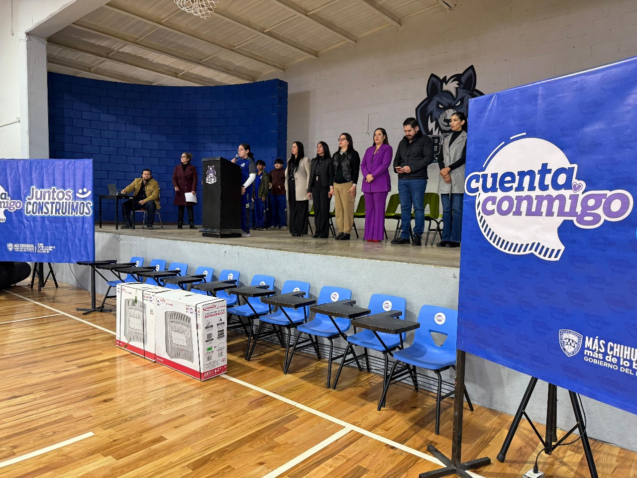 Con la intervención del Instituto Chihuahuense de Infraestructura Física Educativa (ICHIFE), la Secretaría de Comunicaciones y Obras Públicas (SCOP), la Secretaría de Desarrollo Rural (SDR), la Subsecretaría de Movilidad y el Instituto Chihuahuense del Deporte, se hizo entrega formal de 105 butacas, 2 calentones y 10 galones de pintura que beneficiarán a los 630 estudiantes del plantel fortaleciendo su aprendizaje.