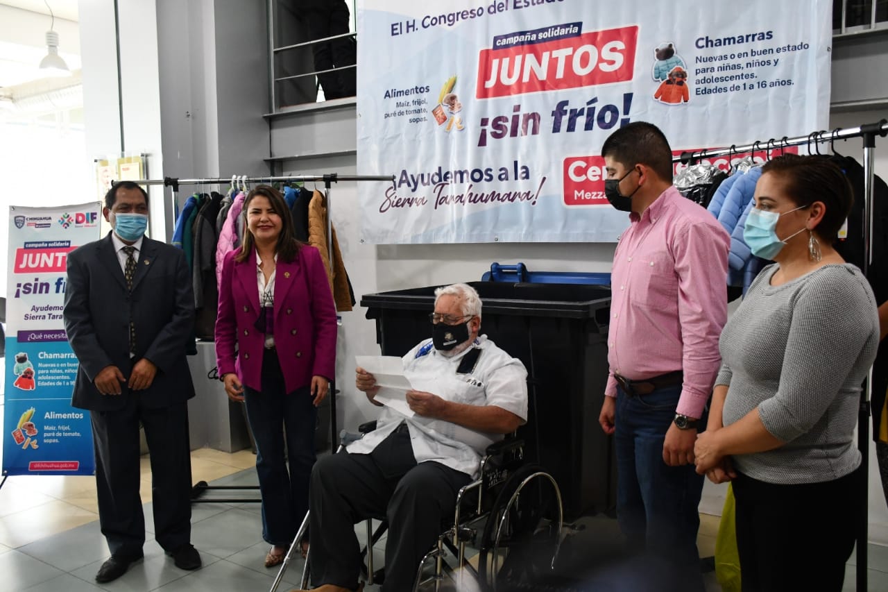 La presidenta del Congreso Geo Bujanda anunció que el Poder Legislativo se suma a la campaña “Juntos sin frío” organizada por el DIF estatal a través de su titular, María Eugenia Galván Antillón, en apoyo a la Sierra Tarahumara.