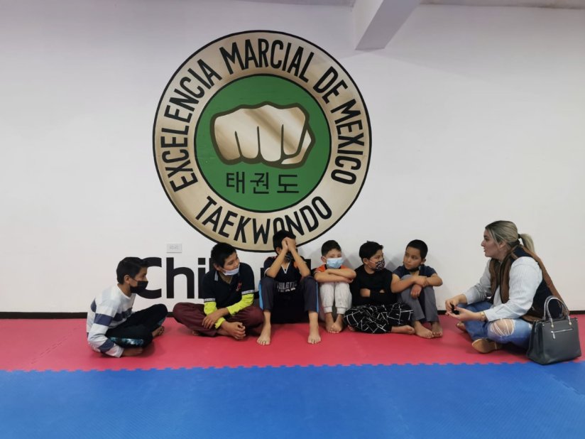 Chihuahua. – La Diputada de Movimiento Ciudadano en el Congreso del Estado, Ilse América García Soto, acudió a escuela de Taekwondo Excelencia Marcial de México A.C., con la finalidad de convivir con los jóvenes que practican este deporte y con su profesor Agustín Rodríguez. Asimismo, les deseó el mejor de los éxitos a los cuatro participantes que este día viajan a la ciudad de Puebla a una competencia nacional.