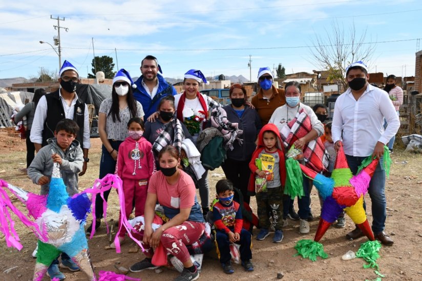 24 de diciembre de 2021. La diputada Geo Bujanda, representante del Distrito 12 entregó apoyos alimentarios, cobijas, juguetes, dulces y piñatas a las comunidades Mazahua norte y rarámuri de la colonia Ladrilleros, así como en el Ejido El Saúz.