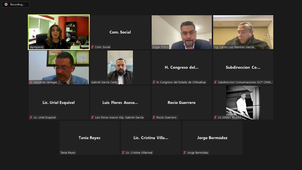 08 de febrero de 2022. Para dar seguimiento a asuntos turnados y que se encuentran en análisis, las y los integrantes de la Comisión de Ciencia, Tecnología e Innovación del Congreso de Chihuahua, se reunieron vía virtual y remota con el Director General del Centro de la Secretaría de Infraestructura, Comunicaciones y Transportes en el Estado de Chihuahua (SICT), Carlos Luis Ramírez García.