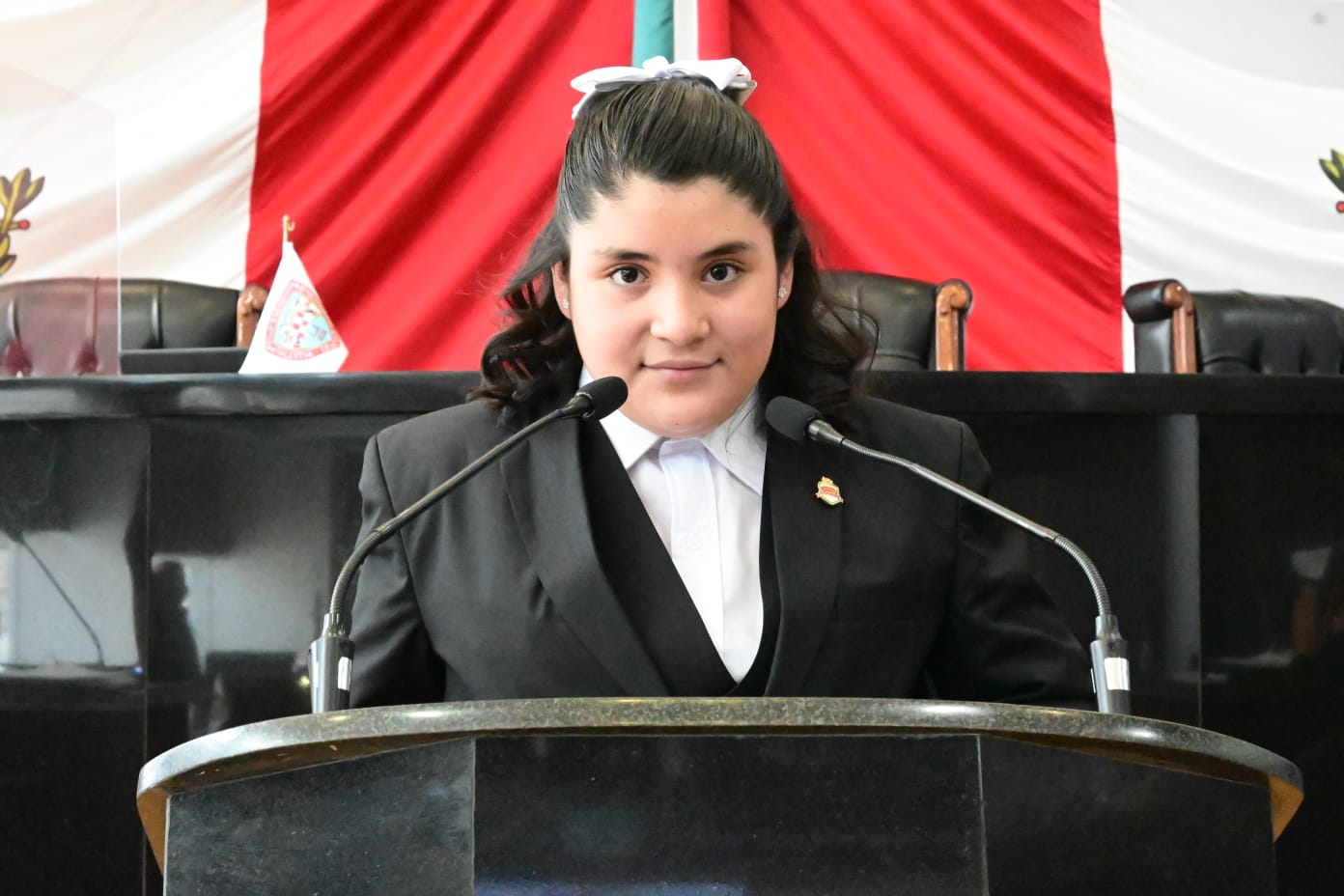 En representación del diputado Óscar Avitia, la niña Monserrat Luviano Márquez, de la escuela Emiliano Zapata de Ciudad Juárez, habló sobre la desigualdad social y económica que aún viven muchos niños, donde sus escuelas tienen carencias, tanto en las zonas urbanas en Juárez como en la sierra, por lo que manifestó la oportunidad que hoy tienen como diputados, para mejorar estas condiciones de desigualdad