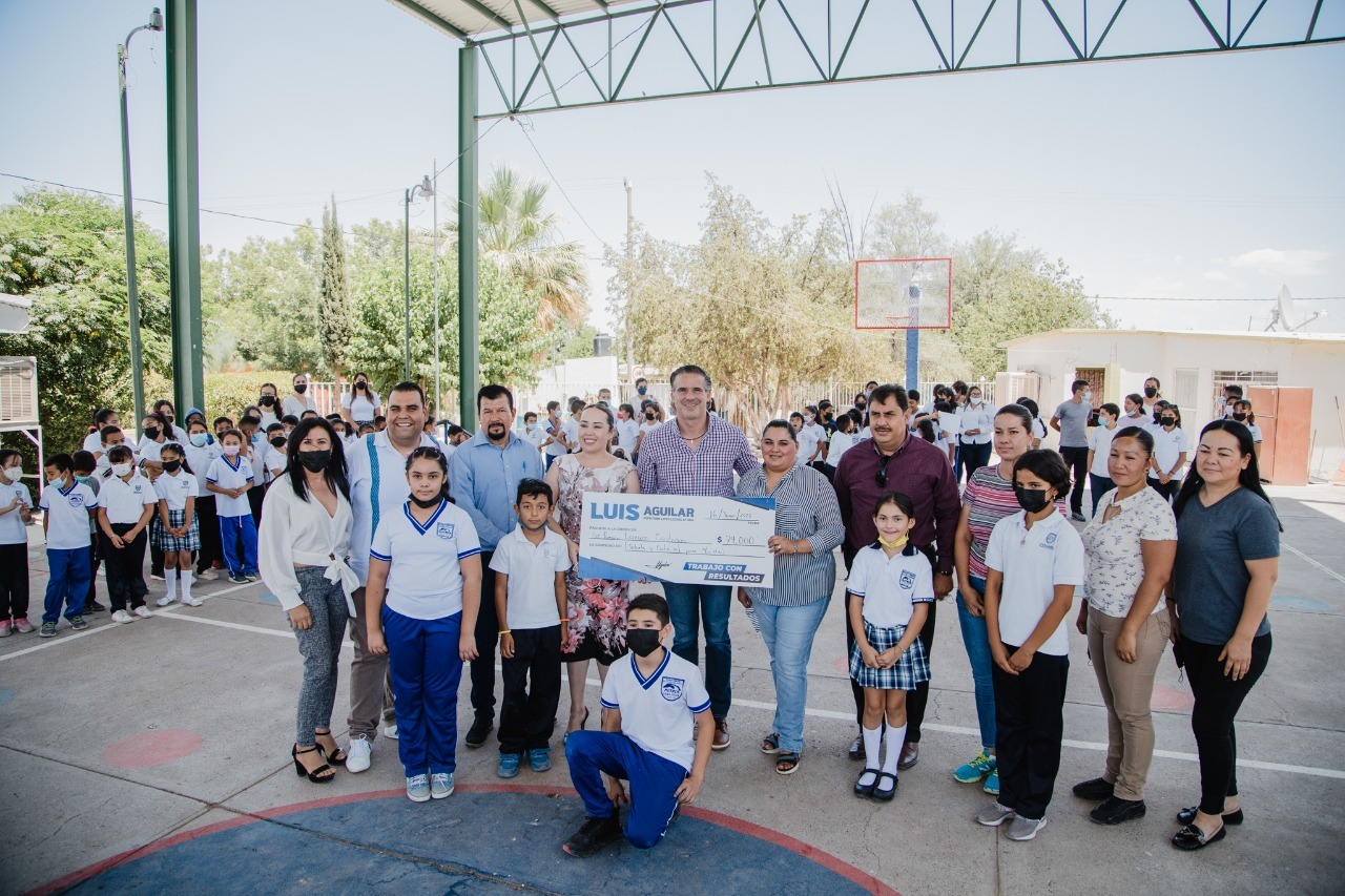 Entrega Luis Aguilar apoyo económico a primaria en Saucillo