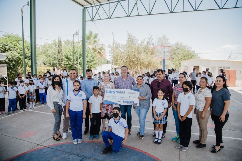 Como parte de las actividades del evento "Diputada y Diputado Infantil por un Día", el legislador de Acción Nacional, Luis Aguilar, entregó un cheque por 74 mil pesos a la primaria Lázaro Cárdenas en la comunidad de Loma Chica, en Saucillo.