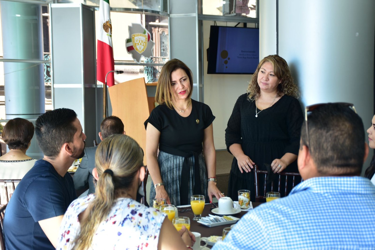 La diputada Isela Martínez Díaz se reunió con participantes de la convocatoria a la Medalla al Mérito Cultural Víctor Hugo Rascón Banda, con el fin de dar a conocer el proceso para elegir al ganador de este reconocimiento, así como escuchar sus inquietudes y propuestas.