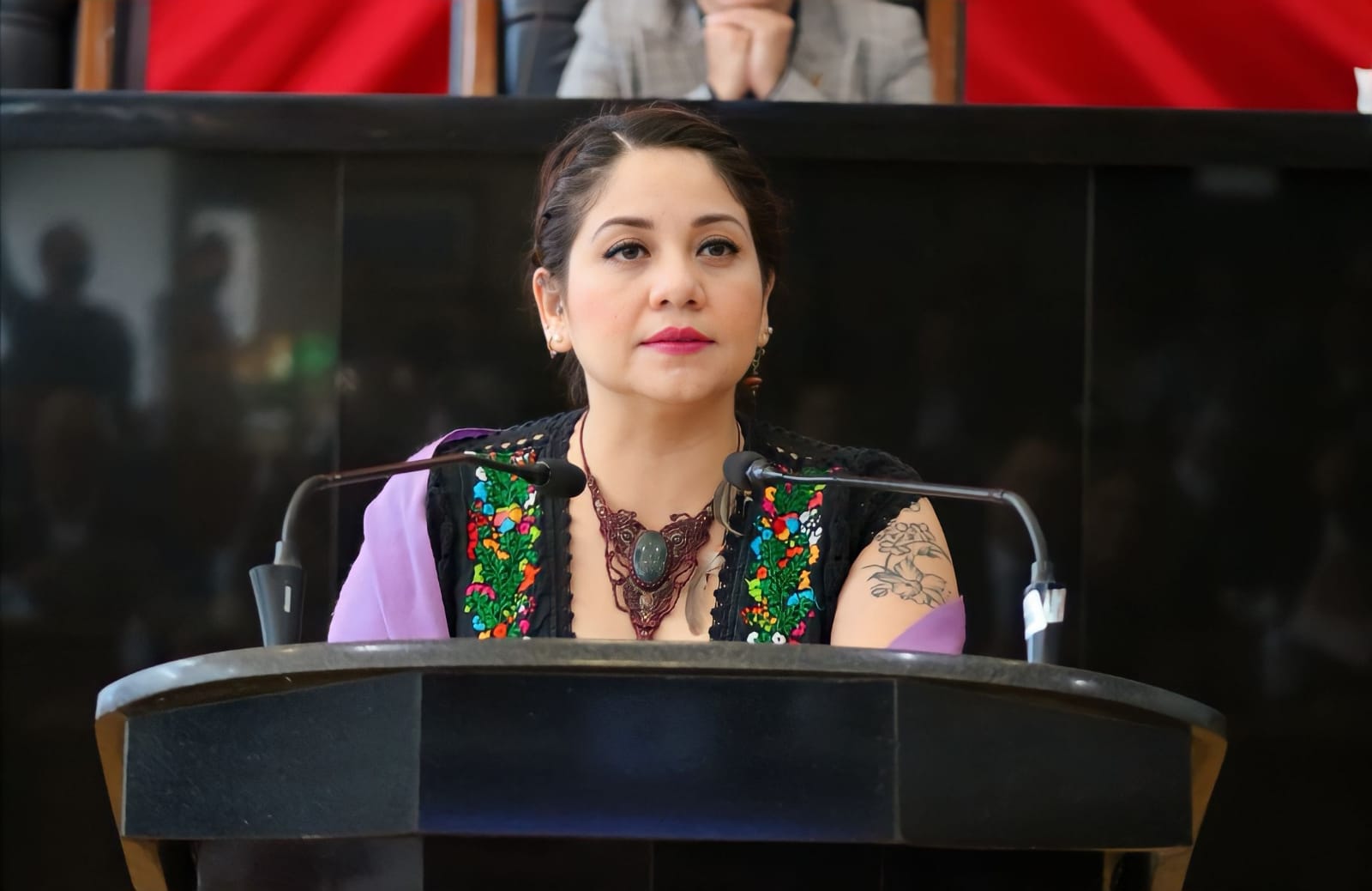 04 de octubre de 2022. Chihuahua. - “¡Ni perdón, ni olvido!; que las letras doradas que hoy se develan sean un recordatorio constante que sirva no solo para enmarcar este recinto, sino para actuar ante cualquier injusticia”, así lo advirtió ante tribuna la diputada del Partido del Trabajo, Deyanira Ozaeta Díaz.