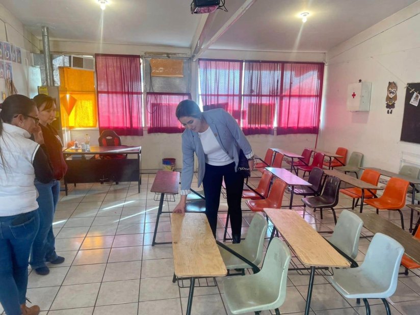 10 de diciembre de 2022. Nuevo Casas Grandes. – Convencida en la importancia de brindar todas las herramientas que sean posibles, para de esta manera, fortalecer la educación en nivel básico de niñas y niños y alentar su formación académica, la diputada local América García, afirmó que continuará con la reparación de butacas para escuelas de la región noroeste del Estado.