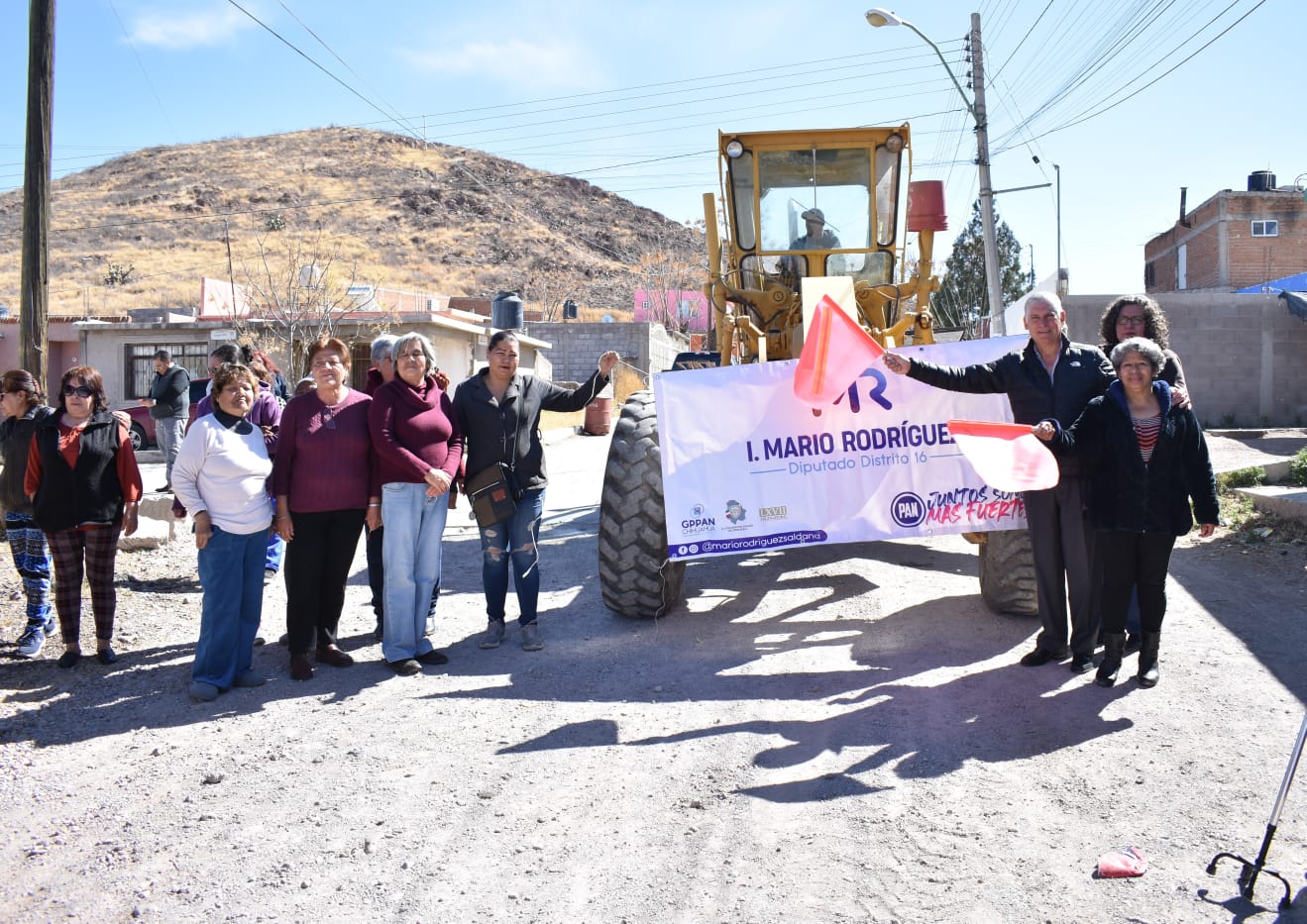 En la colonia Valle Escondido, el diputado panista por el Distrito 16, Mario Rodríguez acudió con su equipo para realizar el rastreo y nivelación de calles en beneficio de 200 familias de la zona.