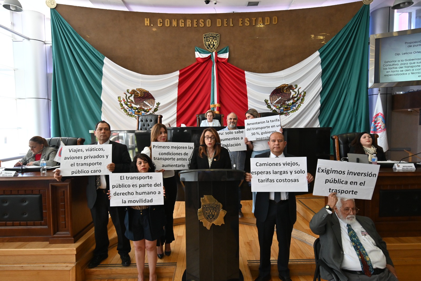 Chihuahua, Chih, 11 abril 2023. La fracción Parlamentaria de Morena en el Congreso del Estado, presentó una iniciativa para exhortar a la gobernadora María Eugenia Campos Galván y al Consejo Consultivo, suspender el incremento a la tarifa del transporte público en Chihuahua, tras el alza que se dio de 3 pesos y que dañará a los usuarios más vulnerables.