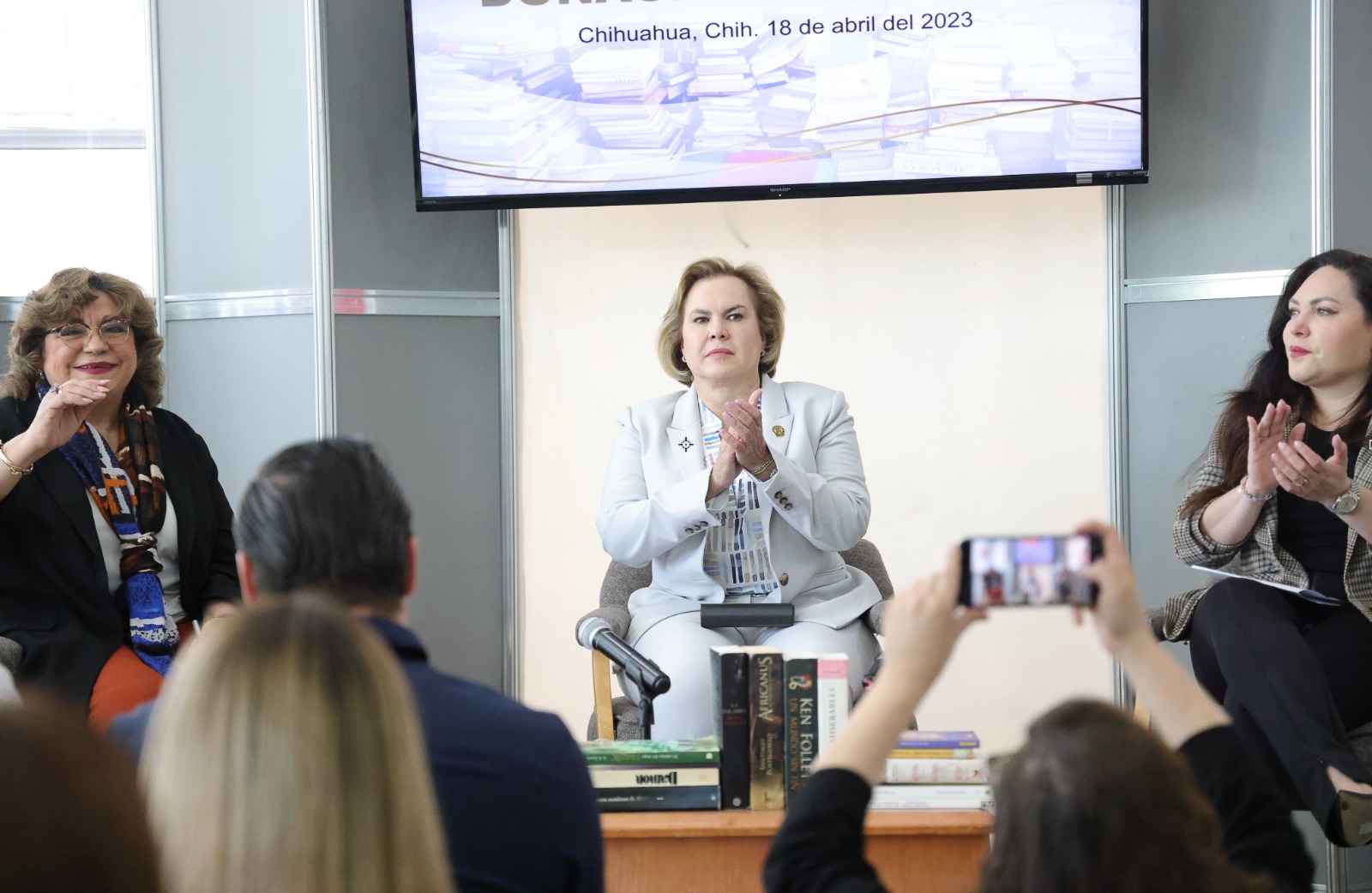 En el evento estuvieron presentes la Licenciada María Soledad Limas y la diputada Georgina Zapata, la primera titular de la Biblioteca del Congreso del Estado y la segunda iniciadora del decreto aprobado por unanimidad que da inicio a la campaña de donación de libros.