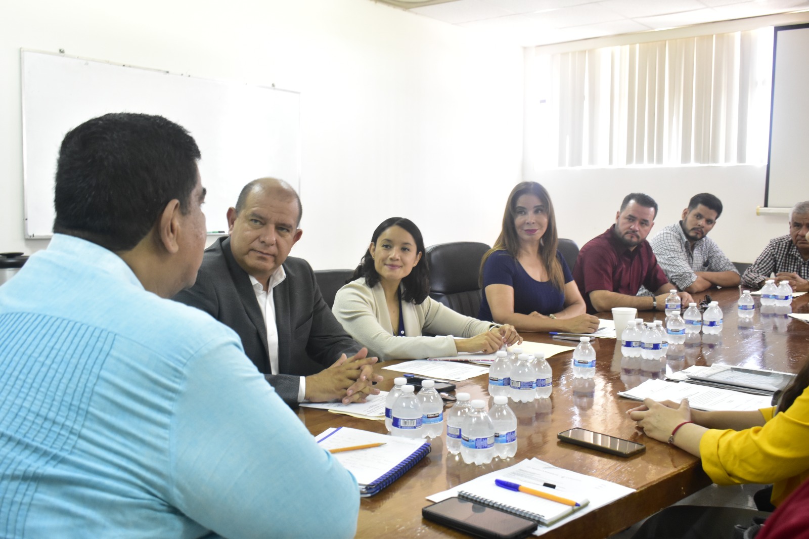 Edin Cuauhtémoc Estrada Sotelo, coordinador de la bancada de morena en el Congreso de Chihuahua, acompañado de los diputados Óscar Daniel Avitia Arellanes, Ilse América García Soto y María Antonieta Pérez Reyes, además de Joel Serna Levario, tesorero del Comisariado Ejidal de Colonia Terrazas, así como de Miguel Baeza Borunda Secretario del mismo ejido, le presentaron al directivo de la descentralizada federal la problemática de los productores de Colonia Terrazas, en Delicias, que básicamente consiste en el crecimiento de su área cultivable.