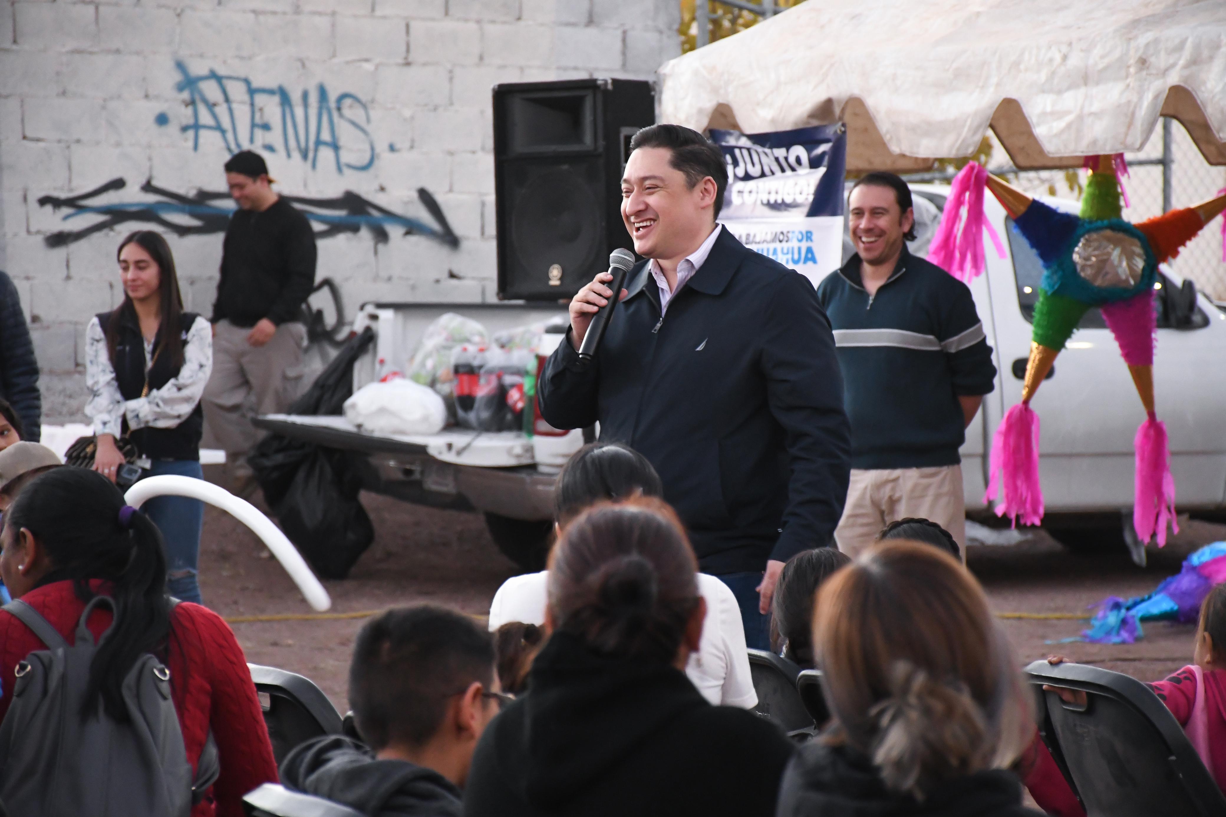 09 de diciembre de 2023. Chihuahua, Chih.- El diputado por el Distrito 18, Alfredo Chávez, integrante del Grupo Parlamentario del PAN, celebró una Posada Navideña junto a las familias de la colonia Atenas, ubicada al norte de la ciudad.