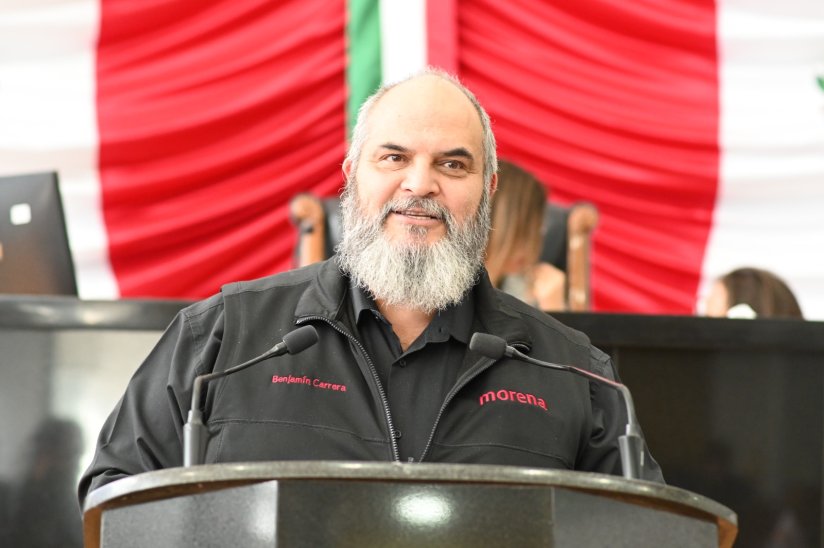 Chihuahua, Chih, 07 febrero 2024. El diputado de morena Benjamín Carrera Chávez, presentó una proposición con carácter de acuerdo para exhortar a la gobernadora María Eugenia Campos Galván, a finde de que de manera urgente, las autoridades educativas realicen el pago en tiempo y forma de salarios, prestaciones y beneficios de una importante cantidad de docentes adscritos a la Secretaría de Educación y Deporte.